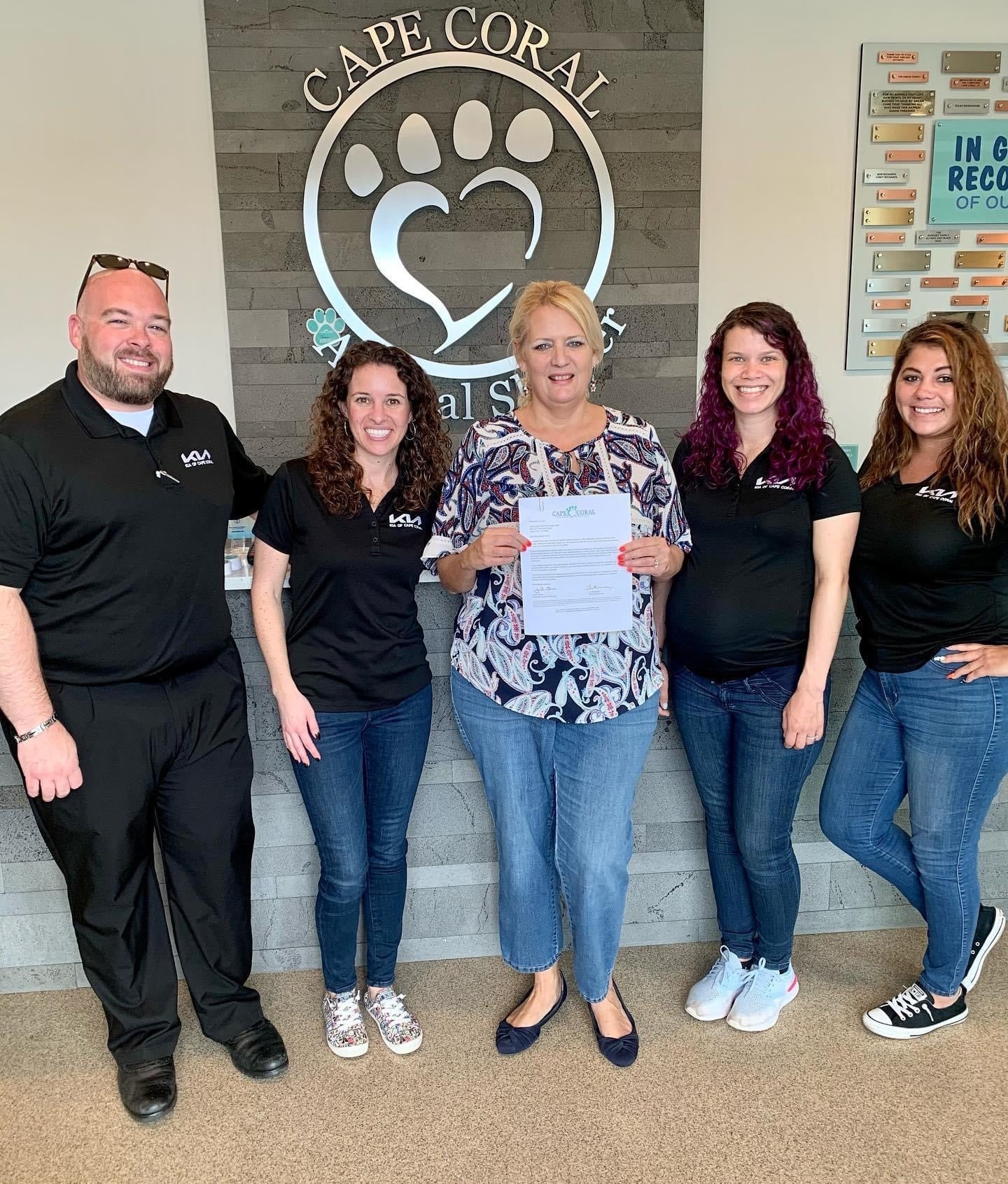 Cape Coral Animal Shelter is a 501 (c)(3) non-profit, no-kill animal shelter. Their mission is clear, to care for and home as many animals as possible. Through medical care, education, training, and of course adoption services; the Cape Coral Animal Shelter work tirelessly to find these pets a qualified and forever home. After an incredible tour of their PURRfect facility… KIA of Cape Coral knew they had to donate to this important and incredible cause