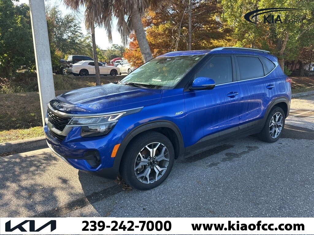 *** FACTORY CERTIFIED *** 10 YEAR X 100,000 MILE POWERTRAIN ONLY WARRANTY *** REMAINING AVAILABLE 5 YEAR X 60,000 MILE BUMPER-TO-BUMPER WARRANTY *** Seltos EX, Kia Certified Pre-Owned Certified, 4D Sport Utility, 2.0L I4 MPI, CVT, AWD, Neptune Blue, Black Artificial Leather, 4-Wheel Disc Brakes, 6 Speakers, 6.052 Axle Ratio, ABS brakes, Air Conditioning, Alloy wheels, AM/FM radio: SiriusXM, Apple CarPlay & Android Auto, Auto High-beam Headlights, Automatic temperature control, Brake assist, Bumpers: body-color, Carpeted Floor Mats, Delay-off headlights, Driver door bin, Driver vanity mirror, Dual front impact airbags, Dual front side impact airbags, Electronic Stability Control, Emergency communication system: 911 Connect, Exterior Parking Camera Rear, Four wheel independent suspension, Front anti-roll bar, Front Bucket Seats, Front Center Armrest, Front fog lights, Front reading lights, Fully automatic headlights, Heated door mirrors, Heated Front Bucket Seats, Heated front seats, Illuminated entry, Leather Shift Knob, Low tire pressure warning, Navigation System, Occupant sensing airbag, Outside temperature display, Overhead airbag, Overhead console, Panic alarm, Passenger door bin, Passenger vanity mirror, Power door mirrors, Power driver seat, Power moonroof, Power steering, Power windows, Radio: AM/FM/MP3 Display Audio w/Navigation, Rear seat center armrest, Rear window defroster, Rear window wiper, Remote keyless entry, Security system, Sofino Premium Leatherette Seat Trim, Speed control, Speed-sensing steering, Split folding rear seat, Spoiler, Steering wheel mounted audio controls, Tachometer, Telescoping steering wheel, Tilt steering wheel, Traction control, Trip computer, Turn signal indicator mirrors, Variably intermittent wipers, Wheels: 17" Alloy w/Machined Finish, Seltos EX, 4D Sport Utility, 2.0L I4 MPI, CVT, AWD, Neptune Blue, Black Artificial Leather.