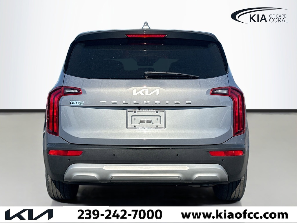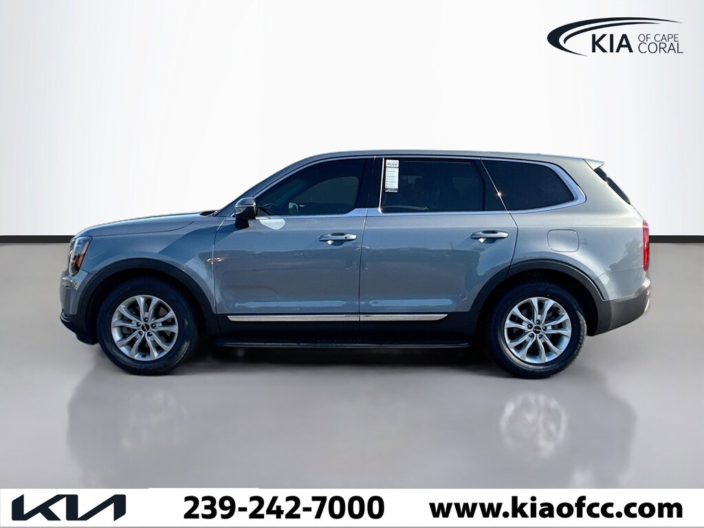 *** FACTORY CERTIFIED *** 10 YEAR X 100,000 MILE POWERTRAIN ONLY WARRANTY *** REMAINING AVAILABLE 5 YEAR X 60,000 MILE BUMPER-TO-BUMPER WARRANTY *** Telluride LX, Kia Certified Pre-Owned Certified, 4D Sport Utility, 3.8L V6 DOHC, 8-Speed Automatic, FWD, Everlasting Silver, Black Artificial Leather, 3.648 Axle Ratio, 3rd row seats: split-bench, 4-Wheel Disc Brakes, 6 Speakers, ABS brakes, Air Conditioning, Alloy wheels, AM/FM radio: SiriusXM, Apple CarPlay & Android Auto, Automatic temperature control, Brake assist, Bumpers: body-color, Carpeted Floor Mats, Delay-off headlights, Driver door bin, Driver vanity mirror, Dual front impact airbags, Dual front side impact airbags, Electronic Stability Control, Emergency communication system: 911 Connect, Four wheel independent suspension, Front anti-roll bar, Front Bucket Seats, Front Center Armrest, Front dual zone A/C, Front reading lights, Fully automatic headlights, Heated door mirrors, Illuminated entry, Knee airbag, Leather steering wheel, Low tire pressure warning, Navigation System, Occupant sensing airbag, Outside temperature display, Overhead airbag, Overhead console, Panic alarm, Passenger door bin, Passenger vanity mirror, Power door mirrors, Power steering, Power windows, Radio data system, Radio: AM/FM Display Audio System, Rear air conditioning, Rear anti-roll bar, Rear audio controls, Rear reading lights, Rear seat center armrest, Rear window defroster, Rear window wiper, Reclining 3rd row seat, Remote keyless entry, Security system, Side Step Bars, Smart Key w/ Push Button and Remote Start, Speed control, Speed-sensing steering, Split folding rear seat, Spoiler, Steering wheel mounted audio controls, Synthetic Leather Seat Trim, Tachometer, Telescoping steering wheel, Tilt steering wheel, Traction control, Trip computer, Turn signal indicator mirrors, Variably intermittent wipers, Wheels: 18" x 7.5" Painted Alloy, Telluride LX, 4D Sport Utility, 3.8L V6 DOHC, 8-Speed Automatic, FWD, Everlasting Silver, Black Artificial Leather.
