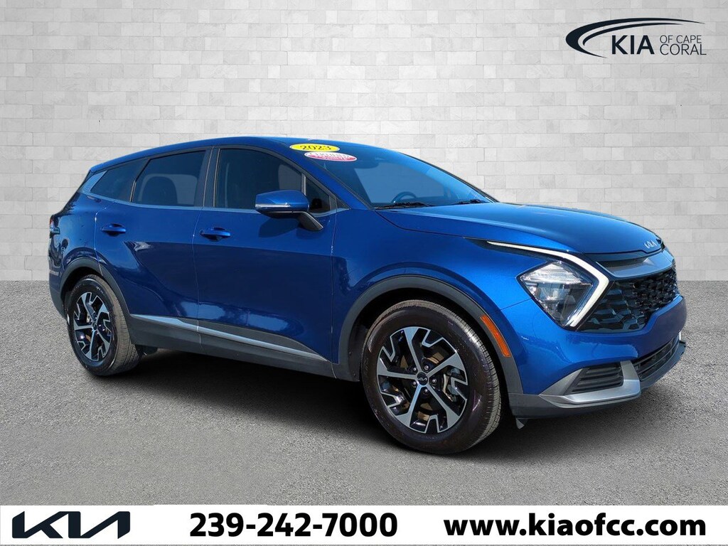 *** FACTORY CERTIFIED *** 10 YEAR X 100,000 MILE POWERTRAIN ONLY WARRANTY *** REMAINING AVAILABLE 5 YEAR X 60,000 MILE BUMPER-TO-BUMPER WARRANTY *** Sportage EX, Kia Certified Pre-Owned Certified, 4D Sport Utility, I4, 8-Speed Automatic, FWD, Sapphire Blue, Black Artificial Leather, 4-Wheel Disc Brakes, 6 Speakers, ABS brakes, Air Conditioning, Alloy wheels, AM/FM radio: SiriusXM, Apple CarPlay & Android Auto, Auto High-beam Headlights, Automatic temperature control, Axle Ratio: 3.648, Brake assist, Bumpers: body-color, Cargo Tray, Carpeted Floor Mats, Compass, Delay-off headlights, Driver door bin, Driver vanity mirror, Dual front impact airbags, Dual front side impact airbags, Electronic Stability Control, Emergency communication system, Four wheel independent suspension, Front anti-roll bar, Front Bucket Seats, Front Center Armrest, Front dual zone A/C, Fully automatic headlights, Heated door mirrors, Heated Front Bucket Seats, Heated front seats, Illuminated entry, Leather Shift Knob, Leather steering wheel, Leatherette Seat Trim, Low tire pressure warning, Navigation System, Occupant sensing airbag, Outside temperature display, Overhead airbag, Overhead console, Panic alarm, Passenger door bin, Passenger vanity mirror, Power door mirrors, Power driver seat, Power steering, Power windows, Radio: AM/FM/HD Audio System, Rain sensing wipers, Rear anti-roll bar, Rear seat center armrest, Rear window defroster, Rear window wiper, Remote keyless entry, Security system, Speed control, Speed-sensing steering, Split folding rear seat, Spoiler, Steering wheel mounted audio controls, Tachometer, Telescoping steering wheel, Tilt steering wheel, Traction control, Trip computer, Turn signal indicator mirrors, Variably intermittent wipers, Wheels: 18" Machine Finish Alloy, Sportage EX, 4D Sport Utility, I4, 8-Speed Automatic, FWD, Sapphire Blue, Black Artificial Leather.