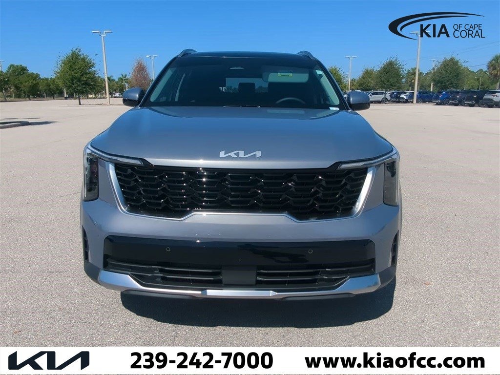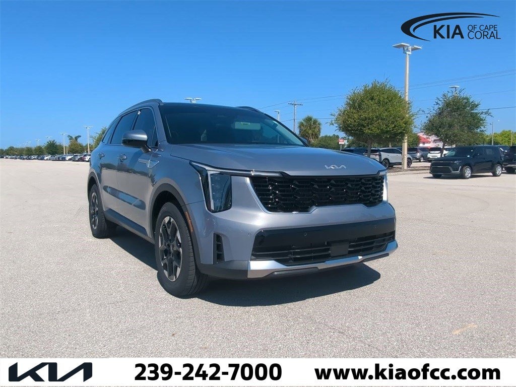 Everlasting Silver 2024 Kia Sorento S FWD 8-Speed Automatic 2.5L I4 DGI DOHC 16V LEV3-SULEV30 191hp Sorento S, 4D Sport Utility, 2.5L I4 DGI DOHC 16V LEV3-SULEV30 191hp, 8-Speed Automatic, Everlasting Silver, Black w/SynTex Artificial Leather Seat Trim, LED Interior Lighting, Panoramic Power Sunroof w/Power Sunshade, Panoramic Sunroof Package, 3.798 Axle Ratio, 3rd row seats: split-bench, 4-Wheel Disc Brakes, 6 Speakers, ABS brakes, Air Conditioning, Alloy wheels, AM/FM radio: SiriusXM, Apple CarPlay & Android Auto, Auto High-beam Headlights, Automatic temperature control, Brake assist, Bumpers: body-color, Delay-off headlights, Driver door bin, Driver vanity mirror, Dual front impact airbags, Dual front side impact airbags, Electronic Stability Control, Emergency communication system: 911 Connect, Exterior Parking Camera Rear, Four wheel independent suspension, Front anti-roll bar, Front Bucket Seats, Front Center Armrest, Front dual zone A/C, Front fog lights, Front reading lights, Fully automatic headlights, Heated door mirrors, Heated Front Bucket Seats, Heated front seats, Illuminated entry, Knee airbag, Leather Shift Knob, Leather steering wheel, Low tire pressure warning, Navigation System, Occupant sensing airbag, Outside temperature display, Overhead airbag, Overhead console, Panic alarm, Passenger door bin, Passenger vanity mirror, Power door mirrors, Power driver seat, Power steering, Power windows, Radio data system, Radio: AM/FM Audio System, Rear anti-roll bar, Rear reading lights, Rear seat center armrest, Rear side impact airbag, Rear window defroster, Rear window wiper, Remote keyless entry, Roof rack: rails only, Security system, Speed control, Speed-sensing steering, Split folding rear seat, Spoiler, Steering wheel mounted audio controls, SynTex Artificial Leather Seat Trim, Tachometer, Telescoping steering wheel, Tilt steering wheel, Traction control, Trip computer, Turn signal indicator mirrors, Variably intermittent wipers, Wheels: 7.5J x 18" Alloy w/Machine Finish, Sorento S, 4D Sport Utility, 2.5L I4 DGI DOHC 16V LEV3-SULEV30 191hp, 8-Speed Automatic, Everlasting Silver, Black w/SynTex Artificial Leather Seat Trim, LED Interior Lighting, Panoramic Power Sunroof w/Power Sunshade, Panoramic Sunroof Package.
