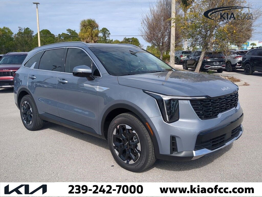 Price includes: $2000 - KFA Dealer Choice Program: $2000 discount and 5.50% APR for 36 months. $30.20 per $1000 financed. Available to well qualified buyers who finance through Kia Finance America. 506. Exp. 11/03/2025 This rebate is only available if you also take the 'KFA Dealer Choice Program: $2000 discount and 5.50% APR for 36 months' rebate. $500 - APR Bonus Cash. Exp. 11/03/2025 Everlasting Silver 2025 Kia Sorento S FWD 8-Speed Automatic 2.5L I4 DGI DOHC 16V LEV3-SULEV30 191hp Sorento S, 4D Sport Utility, 2.5L I4 DGI DOHC 16V LEV3-SULEV30 191hp, 8-Speed Automatic, Everlasting Silver, Gray w/SynTex Artificial Leather Seat Trim, LED Interior Lighting, Panoramic Power Sunroof w/Power Sunshade, Panoramic Sunroof Package, 3rd row seats: split-bench, 4-Wheel Disc Brakes, 6 Speakers, ABS brakes, Air Conditioning, Alloy wheels, AM/FM radio: SiriusXM, Apple CarPlay & Android Auto, Auto High-beam Headlights, Automatic temperature control, Brake assist, Bumpers: body-color, Delay-off headlights, Driver door bin, Driver vanity mirror, Dual front impact airbags, Dual front side impact airbags, Electronic Stability Control, Emergency communication system: 911 Connect, Exterior Parking Camera Rear, Four wheel independent suspension, Front anti-roll bar, Front Bucket Seats, Front Center Armrest, Front dual zone A/C, Front reading lights, Fully automatic headlights, Heated door mirrors, Heated Front Bucket Seats, Heated front seats, Illuminated entry, Knee airbag, Leather Shift Knob, Leather steering wheel, Low tire pressure warning, Navigation System, Occupant sensing airbag, Outside temperature display, Overhead airbag, Overhead console, Panic alarm, Passenger door bin, Passenger vanity mirror, Power door mirrors, Power driver seat, Power steering, Power windows, Radio data system, Radio: AM/FM Standard Sound System, Rear anti-roll bar, Rear reading lights, Rear seat center armrest, Rear side impact airbag, Rear window defroster, Rear window wiper, Remote keyless entry, Security system, Smart Key w/ Push Button and Remote Start, Speed control, Speed-sensing steering, Split folding rear seat, Spoiler, Steering wheel mounted audio controls, SynTex Artificial Leather Seat Trim, Tachometer, Telescoping steering wheel, Tilt steering wheel, Traction control, Trip computer, Turn signal indicator mirrors, Variably intermittent wipers, Wheels: 18" Gloss Black Alloy, Sorento S, 4D Sport Utility, 2.5L I4 DGI DOHC 16V LEV3-SULEV30 191hp, 8-Speed Automatic, Everlasting Silver, Gray w/SynTex Artificial Leather Seat Trim, LED Interior Lighting, Panoramic Power Sunroof w/Power Sunshade, Panoramic Sunroof Package.