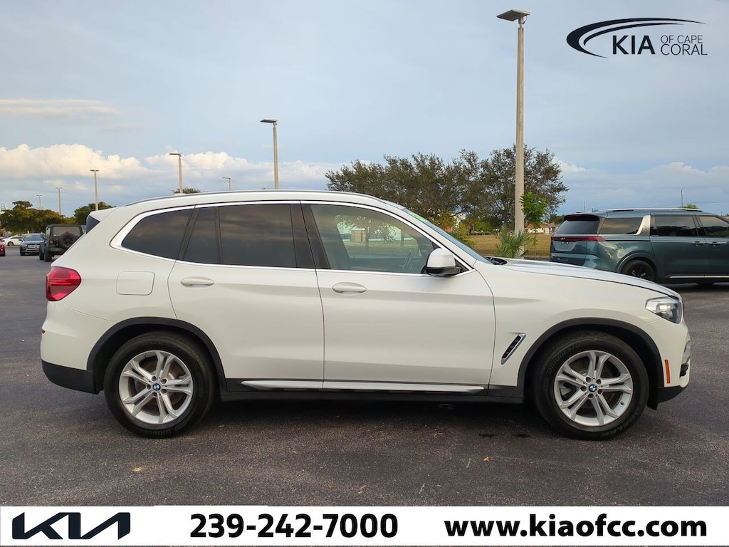 X3 sDrive30i, 4D Sport Utility, 2.0L I4 TwinPower Turbo, 8-Speed Automatic, RWD, Alpine White, Canberra Beige/Black Premium Synthetic, 12 Speakers, 3.39 Axle Ratio, 4-Wheel Disc Brakes, ABS brakes, Advanced Real-Time Traffic Information, Air Conditioning, Alloy wheels, AM/FM radio, Apple CarPlay Compatibility, Auto-dimming door mirrors, Auto-dimming Rear-View mirror, Automatic temperature control, Brake assist, Bumpers: body-color, Delay-off headlights, Driver door bin, Driver vanity mirror, Dual front impact airbags, Dual front side impact airbags, Electronic Stability Control, Emergency communication system: BMW Assist eCall, Exterior Parking Camera Rear, Four wheel independent suspension, Front anti-roll bar, Front Bucket Seats, Front Center Armrest, Front dual zone A/C, Front fog lights, Front reading lights, Fully automatic headlights, Garage door transmitter, Genuine wood dashboard insert, Genuine wood door panel insert, Hands-Free Bluetooth & USB Audio Connection, Heated door mirrors, Heated Front Seats, Hi-Fi Sound System, Illuminated entry, Knee airbag, Low tire pressure warning, Memory seat, Navigation System, Occupant sensing airbag, Outside temperature display, Overhead airbag, Panic alarm, Panoramic Moonroof, Passenger door bin, Passenger vanity mirror, Power door mirrors, Power driver seat, Power Front Seats, Power Liftgate, Power passenger seat, Power steering, Power windows, Radio data system, Radio: AM/FM Stereo w/HD, Rain sensing wipers, Rear air conditioning, Rear anti-roll bar, Rear reading lights, Rear seat center armrest, Rear window defroster, Rear window wiper, Remote keyless entry, Remote Services, Roof rack: rails only, Security system, SensaTec Upholstery, Speed control, Speed-sensing steering, Speed-Sensitive Wipers, Split folding rear seat, Spoiler, Sport Bucket Seats, Sport Leather Steering Wheel, Sport steering wheel, Steering wheel mounted audio controls, Tachometer, Telescoping steering wheel, Tilt steering wheel, Traction control, Trip computer, Turn signal indicator mirrors, Variably intermittent wipers, Wheels: 18" x 7.0" Y-Spoke (Style 688), X3 sDrive30i, 4D Sport Utility, 2.0L I4 TwinPower Turbo, 8-Speed Automatic, RWD, Alpine White, Canberra Beige/Black Premium Synthetic.