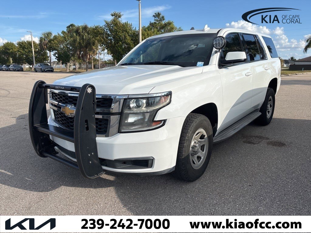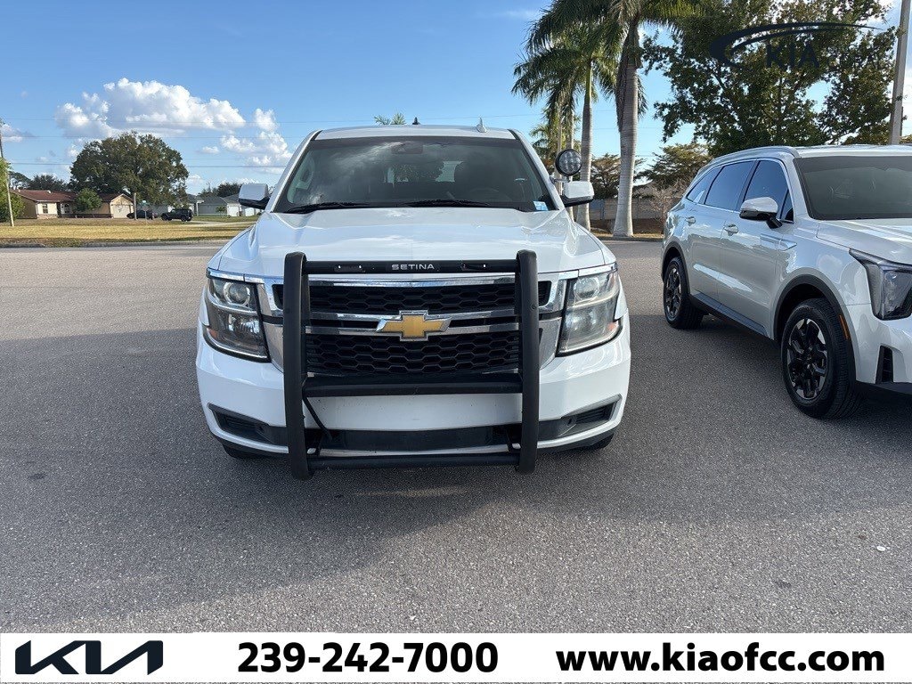 Tahoe Police, 4D Sport Utility, EcoTec3 5.3L V8 Flex Fuel, 6-Speed Automatic Electronic with Overdrive, 4WD, Summit White, Jet Black Cloth, 170 Amp High Output Alternator, 2nd Row 60/40 Split-Folding Manual Bench, 3-Passenger Front 40/20/40 Split-Bench Seat, 3.08 Rear Axle Ratio, 3rd Row Passenger Seat Delete, 4-Wheel Disc Brakes, 6 Speakers, 6-Speaker Audio System Feature, 730 Cold-Cranking Amps Auxiliary Battery, ABS brakes, Air Conditioning, AM/FM radio, Apple CarPlay/Android Auto, Automatic temperature control, Black Assist Steps, Black Rubberized Vinyl Floor Covering, Bluetooth® For Phone, Brake assist, Bumpers: body-color, CD player, Chevrolet Connected Access, Cloth Seat Trim, Delay-off headlights, Driver & Front Passenger Airbags, Driver 10-Way Power Seat Adjuster, Driver door bin, Driver vanity mirror, Dual front impact airbags, Dual front side impact airbags, Electronic Cruise Control w/Set & Resume Speed, Electronic Stability Control, Emergency communication system: OnStar and Chevrolet connected services capable, Enhanced Driver Alert Package, Enhanced Driver Alert Package (Y86), Extended-Range Remote Keyless Entry, Exterior Parking Camera Rear, Forward Collision Alert, Front anti-roll bar, Front Center Armrest w/Storage, Front dual zone A/C, Front Passenger 6-Way Power Seat Adjuster, Front reading lights, Front wheel independent suspension, Fully automatic headlights, Heated door mirrors, Illuminated entry, IntelliBeam Headlamps, Lane Keep Assist w/Lane Departure Warning, License Plate Front Mounting Package, Low Speed Forward Automatic Braking, Low tire pressure warning, Occupant sensing airbag, Overhead airbag, Overhead console, Passenger door bin, Passenger vanity mirror, Power door mirrors, Power driver seat, Power passenger seat, Power steering, Power windows, Power-Adjustable Accelerator & Brake Pedals, Preferred Equipment Group 1FL, Premium audio system: Chevrolet MyLink, Premium Smooth Ride Suspension Package, Radio: Chevrolet Infotainment AM/FM Stereo, Rain sensing wipers, Rear air conditioning, Rear anti-roll bar, Rear Park Assist w/Audible Warning, Rear reading lights, Rear seat center armrest, Rear window defroster, Rear window wiper, Remote keyless entry, Single-Slot CD/MP3 Player, SiriusXM Radio Delete, Skid Plate Package, Speed control, Speed-sensing steering, Split folding rear seat, Spoiler, Steering wheel mounted audio controls, Tachometer, Tilt steering wheel, Traction control, Trip computer, Variably intermittent wipers, Voltmeter, Wheels: 17" x 8" Painted Steel, Tahoe Police, 4D Sport Utility, EcoTec3 5.3L V8 Flex Fuel, 6-Speed Automatic Electronic with Overdrive, 4WD, Summit White, Jet Black Cloth.