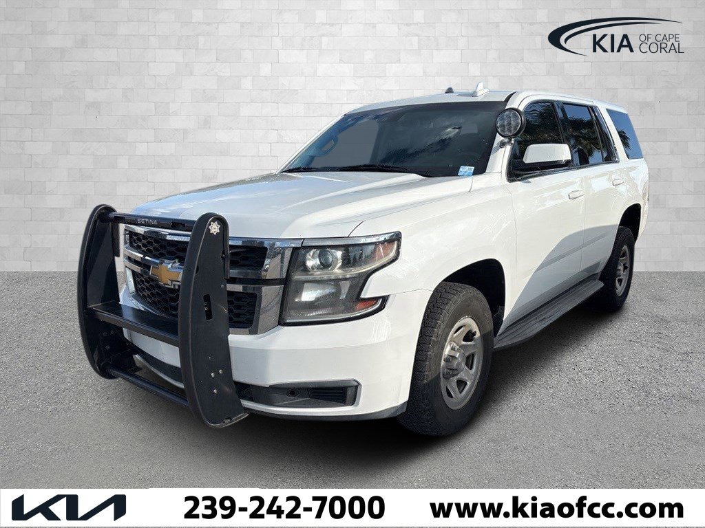 Tahoe Police, 4D Sport Utility, EcoTec3 5.3L V8 Flex Fuel, 6-Speed Automatic Electronic with Overdrive, 4WD, Summit White, Jet Black Cloth, 170 Amp High Output Alternator, 2nd Row 60/40 Split-Folding Manual Bench, 3-Passenger Front 40/20/40 Split-Bench Seat, 3.08 Rear Axle Ratio, 3rd Row Passenger Seat Delete, 4-Wheel Disc Brakes, 6 Speakers, 6-Speaker Audio System Feature, 730 Cold-Cranking Amps Auxiliary Battery, ABS brakes, Air Conditioning, AM/FM radio, Apple CarPlay/Android Auto, Automatic temperature control, Black Assist Steps, Black Rubberized Vinyl Floor Covering, Bluetooth® For Phone, Brake assist, Bumpers: body-color, CD player, Chevrolet Connected Access, Cloth Seat Trim, Delay-off headlights, Driver & Front Passenger Airbags, Driver 10-Way Power Seat Adjuster, Driver door bin, Driver vanity mirror, Dual front impact airbags, Dual front side impact airbags, Electronic Cruise Control w/Set & Resume Speed, Electronic Stability Control, Emergency communication system: OnStar and Chevrolet connected services capable, Enhanced Driver Alert Package, Enhanced Driver Alert Package (Y86), Extended-Range Remote Keyless Entry, Exterior Parking Camera Rear, Forward Collision Alert, Front anti-roll bar, Front Center Armrest w/Storage, Front dual zone A/C, Front Passenger 6-Way Power Seat Adjuster, Front reading lights, Front wheel independent suspension, Fully automatic headlights, Heated door mirrors, Illuminated entry, IntelliBeam Headlamps, Lane Keep Assist w/Lane Departure Warning, License Plate Front Mounting Package, Low Speed Forward Automatic Braking, Low tire pressure warning, Occupant sensing airbag, Overhead airbag, Overhead console, Passenger door bin, Passenger vanity mirror, Power door mirrors, Power driver seat, Power passenger seat, Power steering, Power windows, Power-Adjustable Accelerator & Brake Pedals, Preferred Equipment Group 1FL, Premium audio system: Chevrolet MyLink, Premium Smooth Ride Suspension Package, Radio: Chevrolet Infotainment AM/FM Stereo, Rain sensing wipers, Rear air conditioning, Rear anti-roll bar, Rear Park Assist w/Audible Warning, Rear reading lights, Rear seat center armrest, Rear window defroster, Rear window wiper, Remote keyless entry, Single-Slot CD/MP3 Player, SiriusXM Radio Delete, Skid Plate Package, Speed control, Speed-sensing steering, Split folding rear seat, Spoiler, Steering wheel mounted audio controls, Tachometer, Tilt steering wheel, Traction control, Trip computer, Variably intermittent wipers, Voltmeter, Wheels: 17" x 8" Painted Steel, Tahoe Police, 4D Sport Utility, EcoTec3 5.3L V8 Flex Fuel, 6-Speed Automatic Electronic with Overdrive, 4WD, Summit White, Jet Black Cloth.
