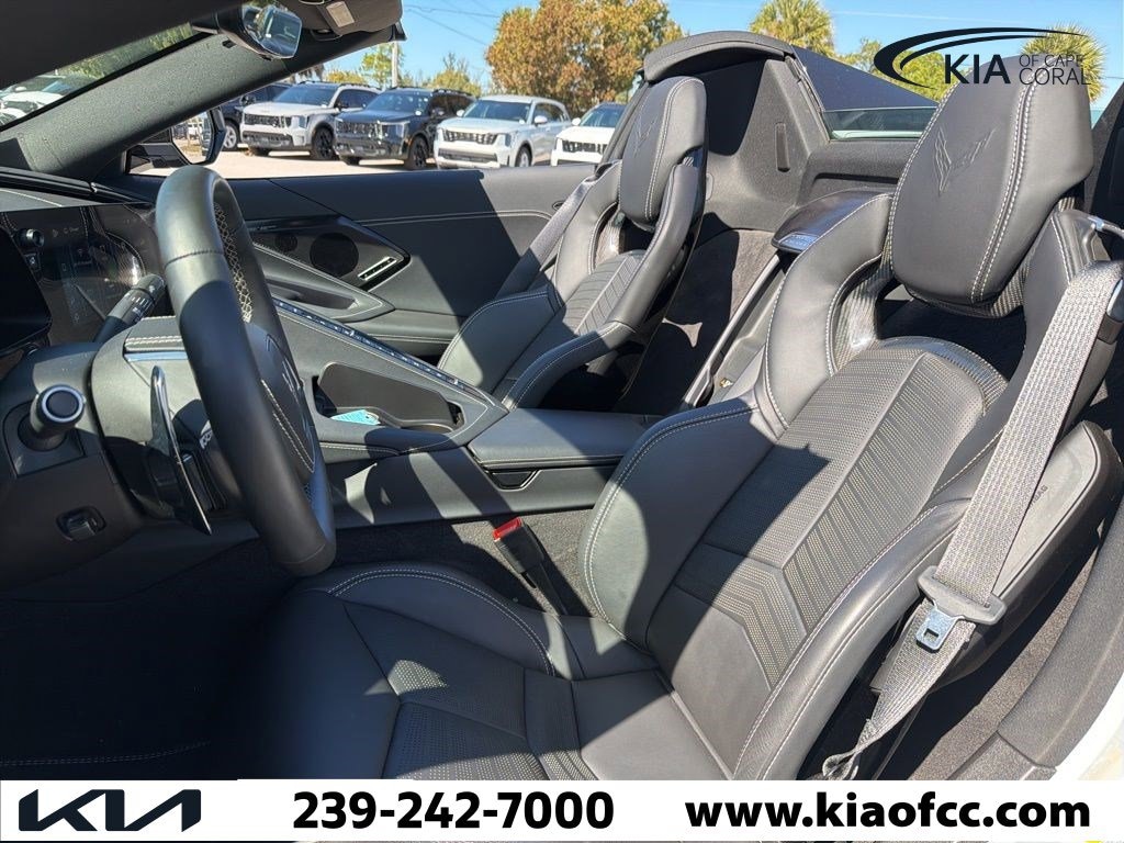 Corvette Stingray 2LT, 2D Convertible, 6.2L V8, 8-Speed Dual Clutch, RWD, Arctic White, Jet Black Leather, 2 Cargo Nets, Automatic Leveling System Headlamp Control, Battery Protection Package, Bose Performance Series Sound System w/14 Speakers, Carbon Flash Metallic Painted Outside Mirrors, Carbon Flash Metallic-Painted Outside Mirrors, Convertible HardTop, Driver Power Bolster Seat Adjuster, Electrical Theft Deterrent System, Electronic Limited-Slip Differential, Front Lift Adjustable Height w/Memory, HD Front & Rear Vision Cameras, Head-Up Display, Heated & Vented Driver & Passenger Seats, Heated Steering Wheel, Heavy-Duty Cooling System, Memory Driver & Passenger Convenience Package, Passenger Power Bolster Seat Adjuster, Performance Data & Video Recorder, Performance Exhaust w/Stainless-Steel Tips, Performance Rear Axle Ratio, Power Driver Lumbar Control Seat Adjuster, Power Passenger Lumbar Control Seat Adjuster, Power-Adjustable Outside Heated Mirrors, Preferred Equipment Group 2LT, Rear Cross Traffic Alert, Rear Z51 Spoiler, Side Blind Zone Alert, Stealth Interior Trim Package, Universal Home Remote, Vehicle Inclination Theft Deterrent Sensor, Vehicle Interior Movement Theft Deterrent Sensor, Wireless Charging for Devices, Z51 Performance Brakes, Z51 Performance Package, Z51 Performance Suspension, 14 Speakers, 4-Wheel Disc Brakes, 8-Way Power Driver Seat Adjuster, 8-Way Power Passenger Seat Adjuster, ABS brakes, Air Conditioning, Alloy wheels, AM/FM radio: SiriusXM, Auto High-beam Headlights, Auto-dimming door mirrors, Auto-dimming Rear-View mirror, Automatic temperature control, Black Exhaust Tips, Black Lug Nuts (LPO), Brake assist, Bumpers: body-color, Compass, Convertible roof lining, Convertible Top w/Carbon Flash Nacelles & Roof, Delay-off headlights, Driver door bin, Driver vanity mirror, Dual front impact airbags, Dual front side impact airbags, Electronic Stability Control, Emergency communication system: OnStar and Chevrolet connected services capable, Exterior Parking Camera Rear, Four wheel independent suspension, Front anti-roll bar, Front Bucket Seats, Front Center Armrest, Front dual zone A/C, Front License Plate Bracket, Front reading lights, Fully automatic headlights, Garage door transmitter, Glass rear window, GT1 Bucket Seats, GT2 Bucket Seats, Heated door mirrors, Heated front seats, Heated steering wheel, Illuminated entry, Integrated roll-over protection, Lane Departure Warning System, Leather Shift Knob, Leather steering wheel, Low tire pressure warning, Memory seat, Mulan Lthr Seating Surfaces w/Perforated Inserts, Navigation System, Occupant sensing airbag, Outside temperature display, Overhead console, Panic alarm, Passenger door bin, Passenger vanity mirror, Performance Traction Management, Power convertible roof, Power door mirrors, Power driver seat, Power passenger seat, Power steering, Power windows, Premium audio system: Chevrolet Infotainment 3 Premium, Radio data system, Radio: Chevrolet Infotainment 3 Premium System, Rear anti-roll bar, Rear window defroster, Remote keyless entry, Security system, Speed control, Speed-sensing steering, Sport steering wheel, Steering wheel memory, Steering wheel mounted audio controls, Tachometer, Telescoping steering wheel, Tilt steering wheel, Traction control, Trip computer, Turn signal indicator mirrors, Variably intermittent wipers, Ventilated front seats, Voltmeter, Wheels: 19" x 8.5" Fr/20" x 11" Rr Bright Silver, Wheels: 19" x 8.5" Fr/20" x 11" Rr Gloss Black, Z51 Perf Suspension w/Magnetic Selective Ride Cntrl, Corvette Stingray 2LT, 2D Convertible, 6.2L V8, 8-Speed Dual Clutch, RWD, Arctic White, Jet Black Leather, 2 Cargo Nets, Automatic Leveling System Headlamp Control, Battery Protection Package, Bose Performance Series Sound System w/14 Speakers, Carbon Flash Metallic Painted Outside Mirrors, Carbon Flash Metallic-Painted Outside Mirrors, Convertible HardTop, Driver Power Bolster Seat Adjuster, Electrical Theft Deterrent System, Electron