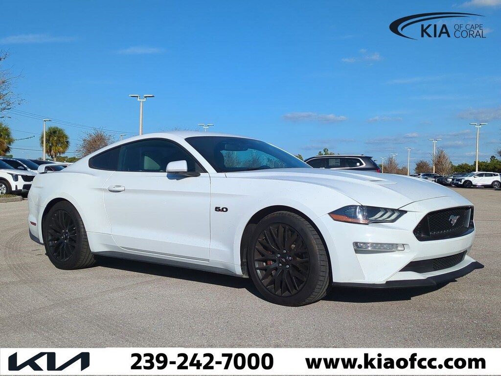 Mustang GT, 2D Coupe, 5.0L V8 Ti-VCT, 6-Speed Manual, RWD, Oxford White, Ceramic Cloth, 3.15 Limited Slip Rear Axle Ratio, 4-Wheel Disc Brakes, 6 Speakers, ABS brakes, Air Conditioning, Alloy wheels, AM/FM radio, AM/FM Stereo, Auto-dimming Rear-View mirror, Brake assist, Bumpers: body-color, Cloth Bucket Seats, Compass, Delay-off headlights, Driver door bin, Driver vanity mirror, Dual front impact airbags, Dual front side impact airbags, Electronic Stability Control, Emergency communication system: 911 Assist, Engine Spun Aluminum Instrument Panel, Equipment Group 300A, Exterior Parking Camera Rear, Four wheel independent suspension, Front anti-roll bar, Front Bucket Seats, Front Center Armrest, Front fog lights, Front reading lights, Fully automatic headlights, Gauge Pack (Oil Pressure & Vacuum), GT Performance Package, HD Front Springs, Illuminated entry, Knee airbag, Larger Brake Rotors, Larger Radiator, Low tire pressure warning, Occupant sensing airbag, Outside temperature display, Overhead airbag, Overhead console, Panic alarm, Passenger door bin, Passenger vanity mirror, Power door mirrors, Power driver seat, Power passenger seat, Power steering, Power windows, Radio data system, Rear anti-roll bar, Rear window defroster, Remote keyless entry, Security system, Speed control, Speed-sensing steering, Speed-Sensitive Wipers, Split folding rear seat, Spoiler, Steering wheel mounted audio controls, SYNC Communications & Entertainment System, Tachometer, Telescoping steering wheel, Tilt steering wheel, Traction control, Trip computer, Unique Stability Control, Variably intermittent wipers, Voltmeter, Wheels: 18" x 8" Machined-Face Aluminum, Wheels: 19" x 9" Fr & 19" x 9.5" Rr Ebony Black, Mustang GT, 2D Coupe, 5.0L V8 Ti-VCT, 6-Speed Manual, RWD, Oxford White, Ceramic Cloth.