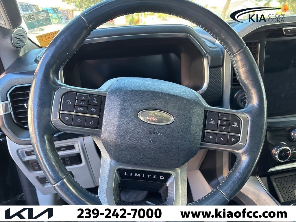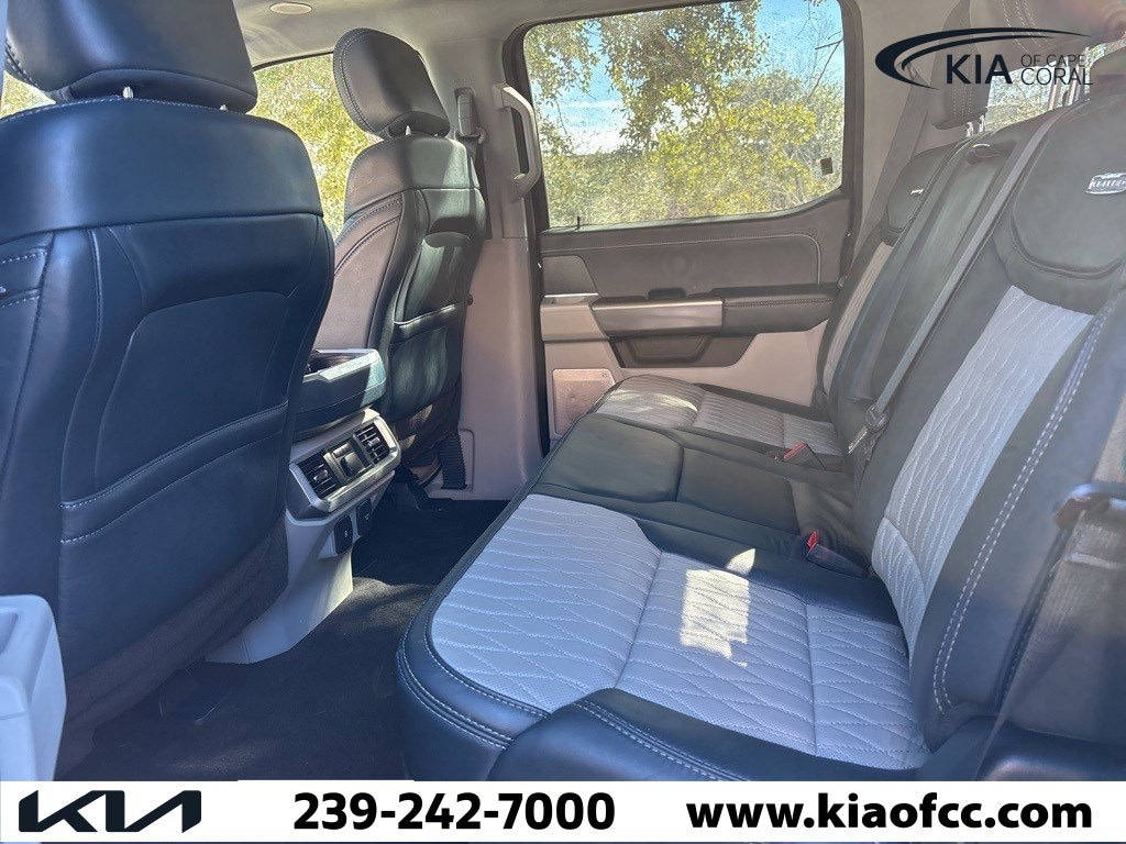 F-150 King Ranch, 4D SuperCrew, 3.5L PowerBoost Full-Hybrid V6, 10-Speed Automatic, 4WD, Blue, Blue Leather, 20" Machined-Aluminum Wheels, 4-Wheel Disc Brakes, 8 Speakers, ABS brakes, Active Park Assist 2.0 Removal, Adjustable pedals, Air Conditioning, Alloy wheels, AM/FM radio: SiriusXM with 360L, Auto High-beam Headlights, Auto tilt-away steering wheel, Auto-dimming door mirrors, Auto-dimming Rear-View mirror, Automatic temperature control, Brake assist, Center High-Mounted Stop Lamp CHMSL Camera Removal, Class IV Trailer Hitch Receiver, Compass, Delay-off headlights, Driver door bin, Driver vanity mirror, Dual front impact airbags, Dual front side impact airbags, Electronic Stability Control, Emergency communication system: SYNC 4 911 Assist, Exterior Parking Camera Rear, Front anti-roll bar, Front Bucket Seats, Front Center Armrest, Front dual zone A/C, Front fog lights, Front reading lights, Front wheel independent suspension, Fully automatic headlights, Garage door transmitter, Genuine wood console insert, Genuine wood dashboard insert, Genuine wood door panel insert, Heated door mirrors, Heated front seats, Heated rear seats, Heated steering wheel, Illuminated entry, Inclination/Intrusion Sensor Removal, Integrated Trailer Brake Controller, King Ranch Leather Bucket Seats, Low tire pressure warning, Memory seat, Multicontour Seats w/Active Motion Removal, Occupant sensing airbag, Outside temperature display, Overhead airbag, Overhead console, Panic alarm, Passenger door bin, Passenger vanity mirror, Pedal memory, Plastic Drop-In Bedliner, Power door mirrors, Power driver seat, Power passenger seat, Power steering, Power windows, Radio data system, Radio: B&O Sound System by Bang & Olufsen, Radio: B&O Unleashed Sound System by Bang & Olufsen, Rain sensing wipers, Rear reading lights, Rear seat center armrest, Rear step bumper, Rear window defroster, Remote keyless entry, Security system, Speed control, Speed-sensing steering, Split folding rear seat, Steering wheel memory, Steering wheel mounted audio controls, SYNC 4 w/Enhanced Voice Recognition, Tachometer, Telescoping steering wheel, Tilt steering wheel, Traction control, Trip computer, Turn signal indicator mirrors, Variably intermittent wipers, Ventilated front seats, Voltmeter, F-150 King Ranch, 4D SuperCrew, 3.5L PowerBoost Full-Hybrid V6, 10-Speed Automatic, 4WD, Blue, Blue Leather.