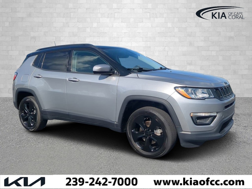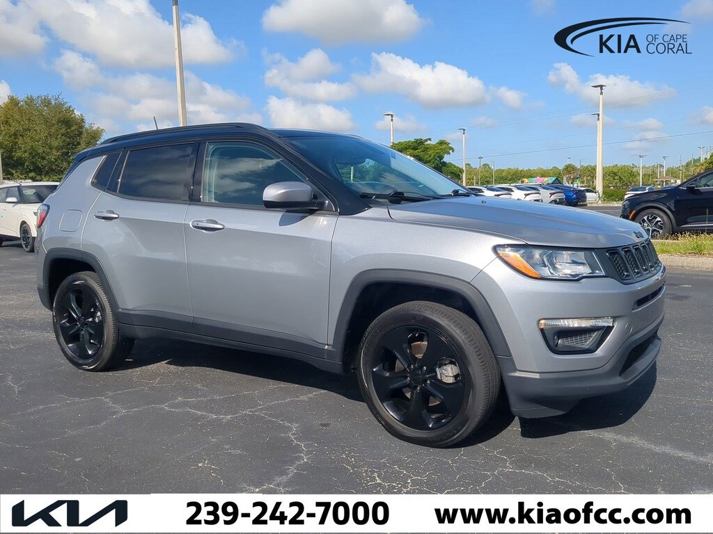 4WD, 3.833 Axle Ratio, 4-Wheel Disc Brakes, 6 Speakers, ABS brakes, Air Conditioning, All-Season Floor Mats, Alloy wheels, Altitude Special Edition, AM/FM radio: SiriusXM, Anti-whiplash front head restraints, Apple CarPlay, Apple CarPlay/Android Auto, Automatic temperature control, Black 4x4 Tailgate Badge, Black Day Light Opening Moldings, Black Grille w/Black Rings, Black Roof, Bluetooth® Streaming Audio, Brake assist, Bright Exhaust Tip, Bumpers: body-color, Cold Weather Group, Compass, Delay-off headlights, Driver door bin, Driver vanity mirror, Dual front impact airbags, Dual front side impact airbags, Electronic Stability Control, Four wheel independent suspension, Front anti-roll bar, Front Bucket Seats, Front Center Armrest w/Storage, Front dual zone A/C, Front fog lights, Front reading lights, Fully automatic headlights, Gloss Black Compass Badge, Gloss Black Fog Lamp Bezels, Gloss Black Jeep Badge, Gloss Black Lower Rear Fascia Valance, Google Android Auto, GPS Antenna Input, Heated door mirrors, Heated Front Seats, Heated Steering Wheel, Illuminated entry, Knee airbag, Low tire pressure warning, Media Hub (USB, AUX), Occupant sensing airbag, Outside temperature display, Overhead airbag, Overhead console, Panic alarm, ParkView Rear Back-Up Camera, Passenger door bin, Passenger vanity mirror, Piano Black Interior Accents, Power door mirrors, Power Front/Fixed Rear Full Sunroof, Power steering, Power windows, Premium Cloth/Vinyl Bucket Seats, Quick Order Package 2GB Altitude, Radio: Uconnect 4 w/7" Display, Rear anti-roll bar, Rear seat center armrest, Rear window defroster, Rear window wiper, Remote keyless entry, Reversible Carpet/Vinyl Cargo Mat, Roof rack: rails only, Speed control, Split folding rear seat, Spoiler, Steering wheel mounted audio controls, Tachometer, Telescoping steering wheel, Tilt steering wheel, Traction control, Trip computer, USB Host Flip, Variably intermittent wipers, Wheels: 17" x 7.0" Silver Painted Aluminum, Wheels: 18" x 7.0" Black Aluminum, Windshield Wiper De-Icer, 4WD.