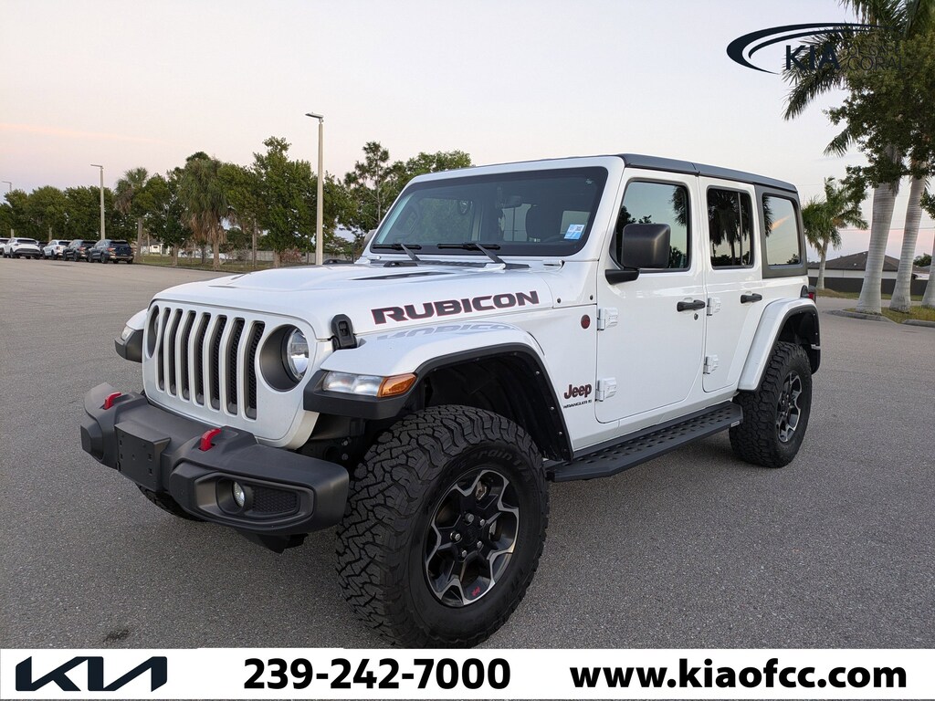 Wrangler Rubicon, 4D Sport Utility, 3.6L V6 24V VVT, 8-Speed Automatic, 4WD, Bright White Clearcoat, Black Cloth, 240 Amp Alternator, 4-Wheel Disc Brakes, 4.10 Rear Axle Ratio, 7 & 4 Pin Wiring Harness, 700 Amp Maintenance Free Battery, 9 Speakers, ABS brakes, Air Conditioning, Alloy wheels, AM/FM radio: SiriusXM, Apple CarPlay/Android Auto, Auto-dimming Rear-View mirror, Automatic temperature control, Aux Battery, Auxiliary Switches, Black 3-Piece Hard Top, Body Color Rubicon Highline Flare, Brake assist, Class II Receiver Hitch, Compass, Delay-off headlights, Driver door bin, Driver vanity mirror, Dual front impact airbags, Dual front side impact airbags, Electronic Stability Control, Emergency communication system: SiriusXM Guardian, Engine Oil Cooler, Freedom Panel Storage Bag, Front anti-roll bar, Front Bucket Seats, Front Center Armrest w/Storage, Front Differential Electronic Lock w/Axle Disconnect, Front dual zone A/C, Front fog lights, Front License Plate Bracket, Front reading lights, Fully automatic headlights, Garage door transmitter, Heated door mirrors, Illuminated entry, Integrated roll-over protection, Jeep Trail Rated Kit, Low tire pressure warning, MOPAR All-Weather Floor Mats, MOPAR Hardtop Headliner, Navigation System, No Soft Top, Non-Lock Fuel Cap w/o Discriminator, Occupant sensing airbag, Outside temperature display, Panic alarm, ParkView Rear Back-Up Camera, Passenger door bin, Passenger vanity mirror, Performance Suspension, Power door mirrors, Power steering, Power windows, Premium Cloth Low-Back Bucket Seats, Quick Order Package 25R Rubicon, Radio data system, Radio: Uconnect 4C Nav w/8.4" Display, Rear anti-roll bar, Rear reading lights, Rear Window Defroster, Rear Window Wiper/Washer, Remote keyless entry, Security system, Speed control, Split folding rear seat, Steering wheel mounted audio controls, Stop-Start Dual Battery System, Tachometer, Telescoping steering wheel, Tilt steering wheel, Traction control, Trailer Tow & Aux Switch Group, Trip computer, Variably intermittent wipers, Voltmeter, Wheels: 17" x 7.5" Machined/Painted Black, Wrangler Rubicon, 4D Sport Utility, 3.6L V6 24V VVT, 8-Speed Automatic, 4WD, Bright White Clearcoat, Black Cloth.