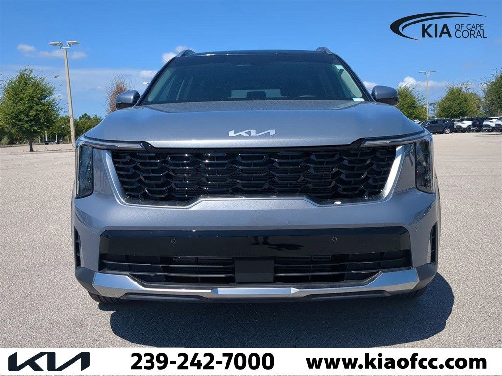 Everlasting Silver 2024 Kia Sorento S FWD 8-Speed Automatic 2.5L I4 DGI DOHC 16V LEV3-SULEV30 191hp Sorento S, 4D Sport Utility, 2.5L I4 DGI DOHC 16V LEV3-SULEV30 191hp, 8-Speed Automatic, Everlasting Silver, Black w/SynTex Artificial Leather Seat Trim, LED Interior Lighting, Panoramic Power Sunroof w/Power Sunshade, Panoramic Sunroof Package, 3.798 Axle Ratio, 3rd row seats: split-bench, 4-Wheel Disc Brakes, 6 Speakers, ABS brakes, Air Conditioning, Alloy wheels, AM/FM radio: SiriusXM, Apple CarPlay & Android Auto, Auto High-beam Headlights, Automatic temperature control, Brake assist, Bumpers: body-color, Carpeted Floor Mats, Delay-off headlights, Driver door bin, Driver vanity mirror, Dual front impact airbags, Dual front side impact airbags, EC Mirror w/HomeLink, Electronic Stability Control, Emergency communication system: 911 Connect, Exterior Parking Camera Rear, Four wheel independent suspension, Front anti-roll bar, Front Bucket Seats, Front Center Armrest, Front dual zone A/C, Front fog lights, Front reading lights, Fully automatic headlights, Heated door mirrors, Heated Front Bucket Seats, Heated front seats, Illuminated entry, Knee airbag, Leather Shift Knob, Leather steering wheel, Low tire pressure warning, Navigation System, Occupant sensing airbag, Outside temperature display, Overhead airbag, Overhead console, Panic alarm, Passenger door bin, Passenger vanity mirror, Power door mirrors, Power driver seat, Power steering, Power windows, Radio data system, Radio: AM/FM Audio System, Rear anti-roll bar, Rear reading lights, Rear seat center armrest, Rear side impact airbag, Rear window defroster, Rear window wiper, Remote keyless entry, Roof rack: rails only, Security system, Speed control, Speed-sensing steering, Split folding rear seat, Spoiler, Steering wheel mounted audio controls, SynTex Artificial Leather Seat Trim, Tachometer, Telescoping steering wheel, Tilt steering wheel, Traction control, Trip computer, Turn signal indicator mirrors, Variably intermittent wipers, Wheels: 7.5J x 18" Alloy w/Machine Finish, Sorento S, 4D Sport Utility, 2.5L I4 DGI DOHC 16V LEV3-SULEV30 191hp, 8-Speed Automatic, Everlasting Silver, Black w/SynTex Artificial Leather Seat Trim, LED Interior Lighting, Panoramic Power Sunroof w/Power Sunshade, Panoramic Sunroof Package.