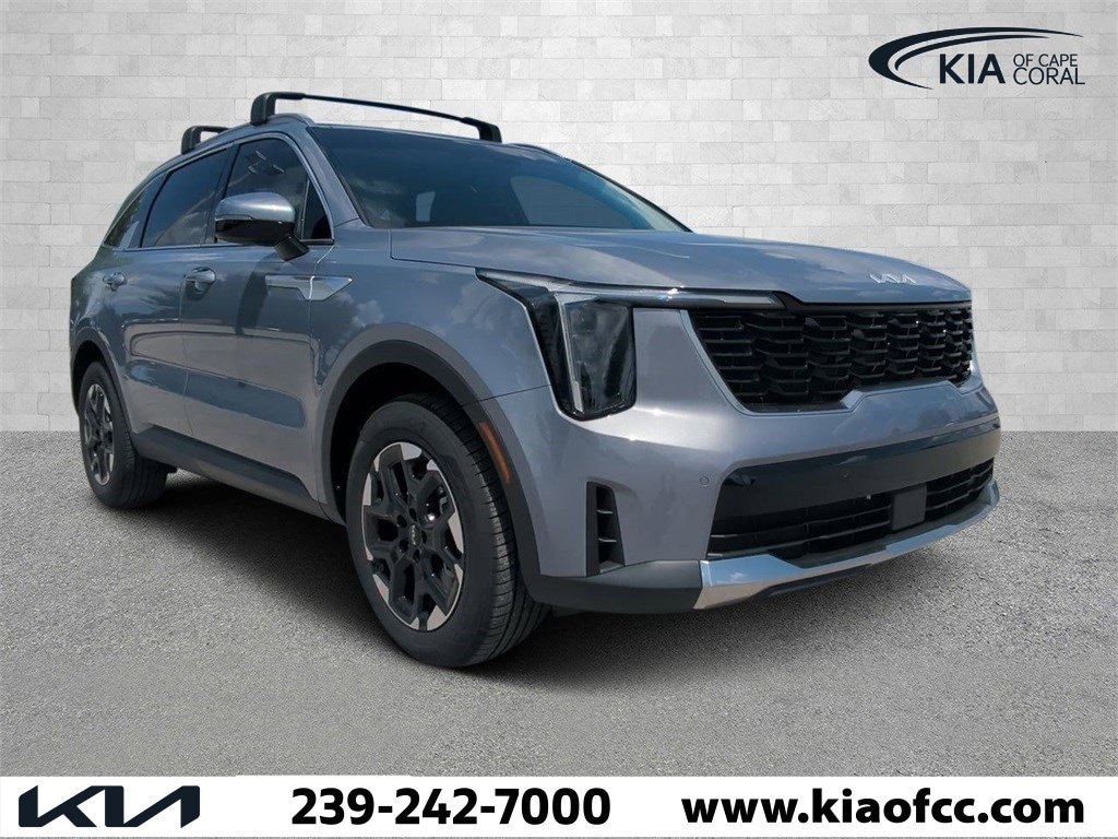 Everlasting Silver 2024 Kia Sorento S FWD 8-Speed Automatic 2.5L I4 DGI DOHC 16V LEV3-SULEV30 191hp Sorento S, 4D Sport Utility, 2.5L I4 DGI DOHC 16V LEV3-SULEV30 191hp, 8-Speed Automatic, Everlasting Silver, Black w/SynTex Artificial Leather Seat Trim, LED Interior Lighting, Panoramic Power Sunroof w/Power Sunshade, Panoramic Sunroof Package, 3.798 Axle Ratio, 3rd row seats: split-bench, 4-Wheel Disc Brakes, 6 Speakers, ABS brakes, Air Conditioning, Alloy wheels, AM/FM radio: SiriusXM, Apple CarPlay & Android Auto, Auto High-beam Headlights, Automatic temperature control, Brake assist, Bumpers: body-color, Delay-off headlights, Driver door bin, Driver vanity mirror, Dual front impact airbags, Dual front side impact airbags, Electronic Stability Control, Emergency communication system: 911 Connect, Exterior Parking Camera Rear, Four wheel independent suspension, Front anti-roll bar, Front Bucket Seats, Front Center Armrest, Front dual zone A/C, Front fog lights, Front reading lights, Fully automatic headlights, Heated door mirrors, Heated Front Bucket Seats, Heated front seats, Illuminated entry, Knee airbag, Leather Shift Knob, Leather steering wheel, Low tire pressure warning, Navigation System, Occupant sensing airbag, Outside temperature display, Overhead airbag, Overhead console, Panic alarm, Passenger door bin, Passenger vanity mirror, Power door mirrors, Power driver seat, Power steering, Power windows, Radio data system, Radio: AM/FM Audio System, Rear anti-roll bar, Rear reading lights, Rear seat center armrest, Rear side impact airbag, Rear window defroster, Rear window wiper, Remote keyless entry, Roof rack: rails only, Security system, Speed control, Speed-sensing steering, Split folding rear seat, Spoiler, Steering wheel mounted audio controls, SynTex Artificial Leather Seat Trim, Tachometer, Telescoping steering wheel, Tilt steering wheel, Traction control, Trip computer, Turn signal indicator mirrors, Variably intermittent wipers, Wheels: 7.5J x 18" Alloy w/Machine Finish, Sorento S, 4D Sport Utility, 2.5L I4 DGI DOHC 16V LEV3-SULEV30 191hp, 8-Speed Automatic, Everlasting Silver, Black w/SynTex Artificial Leather Seat Trim, LED Interior Lighting, Panoramic Power Sunroof w/Power Sunshade, Panoramic Sunroof Package.