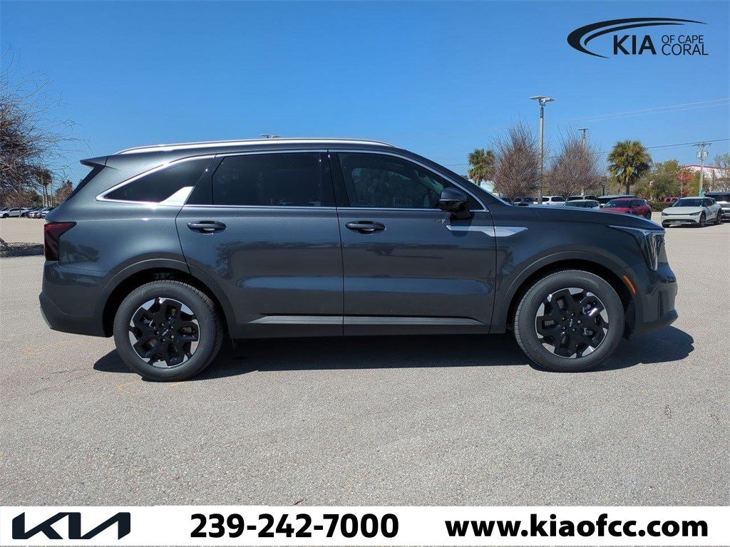 Gravity Gray 2024 Kia Sorento S FWD 8-Speed Automatic 2.5L I4 DGI DOHC 16V LEV3-SULEV30 191hp Sorento S, 4D Sport Utility, 2.5L I4 DGI DOHC 16V LEV3-SULEV30 191hp, 8-Speed Automatic, Gravity Gray, Gray w/SynTex Artificial Leather Seat Trim, LED Interior Lighting, Panoramic Power Sunroof w/Power Sunshade, Panoramic Sunroof Package, 3.798 Axle Ratio, 3rd row seats: split-bench, 4-Wheel Disc Brakes, 6 Speakers, ABS brakes, Air Conditioning, Alloy wheels, AM/FM radio: SiriusXM, Apple CarPlay & Android Auto, Auto High-beam Headlights, Automatic temperature control, Brake assist, Bumpers: body-color, Delay-off headlights, Driver door bin, Driver vanity mirror, Dual front impact airbags, Dual front side impact airbags, Electronic Stability Control, Emergency communication system: 911 Connect, Exterior Parking Camera Rear, Four wheel independent suspension, Front anti-roll bar, Front Bucket Seats, Front Center Armrest, Front dual zone A/C, Front fog lights, Front reading lights, Fully automatic headlights, Heated door mirrors, Heated Front Bucket Seats, Heated front seats, Illuminated entry, Knee airbag, Leather Shift Knob, Leather steering wheel, Low tire pressure warning, Navigation System, Occupant sensing airbag, Outside temperature display, Overhead airbag, Overhead console, Panic alarm, Passenger door bin, Passenger vanity mirror, Power door mirrors, Power driver seat, Power steering, Power windows, Radio data system, Radio: AM/FM Audio System, Rear anti-roll bar, Rear reading lights, Rear seat center armrest, Rear side impact airbag, Rear window defroster, Rear window wiper, Remote keyless entry, Roof rack: rails only, Security system, Speed control, Speed-sensing steering, Split folding rear seat, Spoiler, Steering wheel mounted audio controls, SynTex Artificial Leather Seat Trim, Tachometer, Telescoping steering wheel, Tilt steering wheel, Traction control, Trip computer, Turn signal indicator mirrors, Variably intermittent wipers, Sorento S, 4D Sport Utility, 2.5L I4 DGI DOHC 16V LEV3-SULEV30 191hp, 8-Speed Automatic, Gravity Gray, Gray w/SynTex Artificial Leather Seat Trim, LED Interior Lighting, Panoramic Power Sunroof w/Power Sunshade, Panoramic Sunroof Package.
