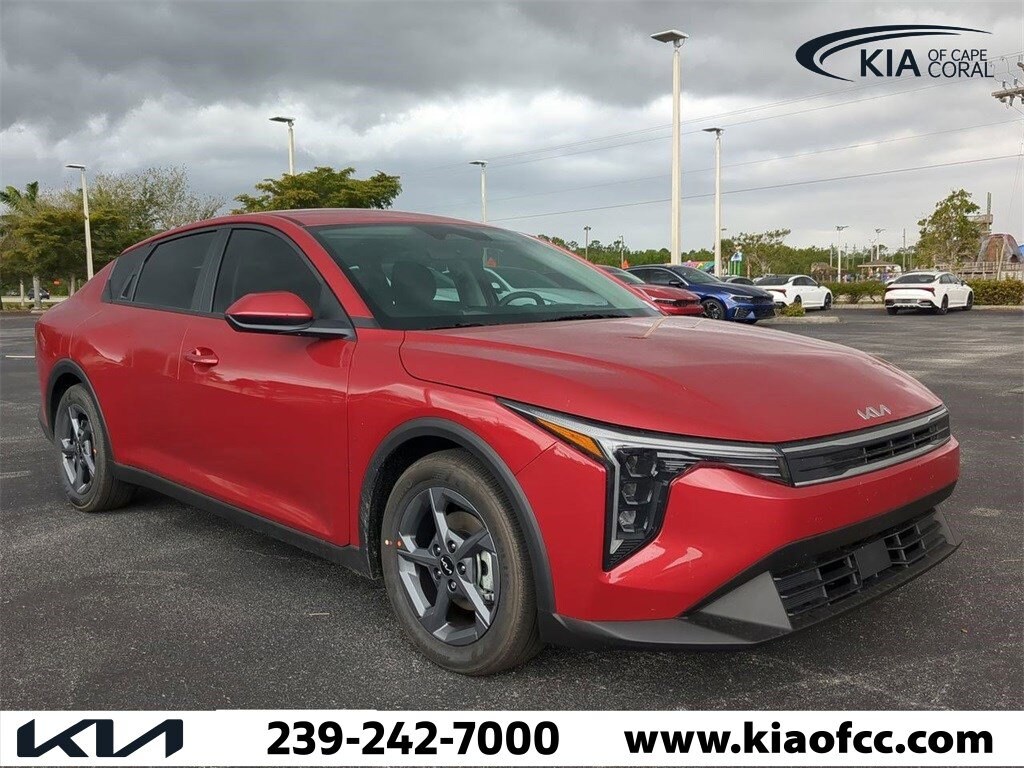 Currant Red 2025 Kia K4 LXS FWD CVT 2.0L I4 MPI K4 LXS, 4D Sedan, 2.0L I4 MPI, CVT, Currant Red, Gray w/Cloth Seat Trim, 4-Wheel Disc Brakes, 6 Speakers, ABS brakes, Air Conditioning, Alloy wheels, AM/FM radio: SiriusXM, Apple CarPlay & Android Auto, Auto High-beam Headlights, Brake assist, Bumpers: body-color, Cloth Seat Trim, Delay-off headlights, Driver door bin, Driver vanity mirror, Dual front impact airbags, Dual front side impact airbags, Electronic Stability Control, Front anti-roll bar, Front Bucket Seats, Front Center Armrest, Front reading lights, Front wheel independent suspension, Fully automatic headlights, Heated door mirrors, Illuminated entry, Low tire pressure warning, Occupant sensing airbag, Outside temperature display, Overhead airbag, Overhead console, Panic alarm, Passenger door bin, Passenger vanity mirror, Power door mirrors, Power steering, Power windows, Radio data system, Radio: 12.3" Touchscreen Audio Display, Rear side impact airbag, Rear window defroster, Remote keyless entry, Security system, Speed control, Split folding rear seat, Steering wheel mounted audio controls, Tachometer, Telescoping steering wheel, Tilt steering wheel, Traction control, Trip computer, Variably intermittent wipers, Wheels: 16" x 6.5J Dark Gray Alloy, K4 LXS, 4D Sedan, 2.0L I4 MPI, CVT, Currant Red, Gray w/Cloth Seat Trim.