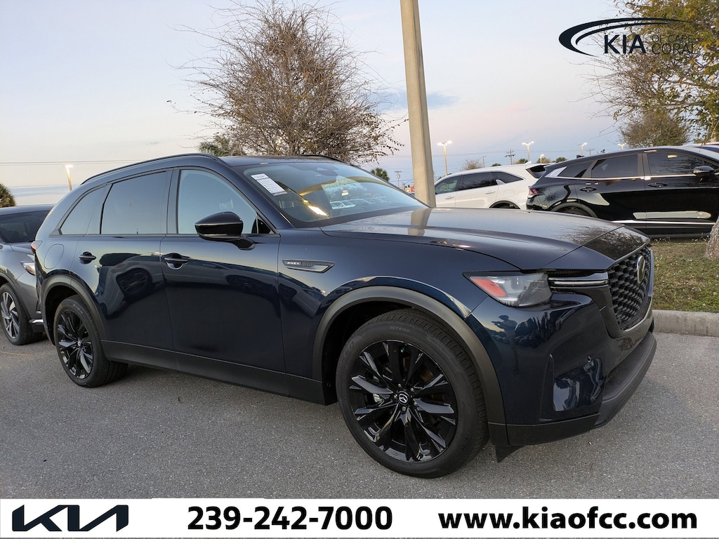 CX-90 PHEV Premium, 4D Sport Utility, 2.5L 4-Cylinder, 8-Speed Automatic, AWD, Deep Crystal Blue Mica, Black Leather, 12 Speakers, 2nd-Row Captain's Chairs, 3rd row seats: bench, 4-Wheel Disc Brakes, ABS brakes, Air Conditioning, Alloy wheels, AM/FM radio: SiriusXM, Auto High-beam Headlights, Auto-dimming Rear-View mirror, Automatic temperature control, Brake assist, Bumpers: body-color, Compass, Delay-off headlights, Driver door bin, Driver vanity mirror, Dual front impact airbags, Dual front side impact airbags, E911 Automatic Emergency Notification, Electronic Stability Control, Emergency communication system: MAZDA CONNECT, Exterior Parking Camera Rear, Four wheel independent suspension, Front anti-roll bar, Front Bucket Seats, Front Center Armrest w/Storage, Front dual zone A/C, Front reading lights, Fully automatic headlights, Garage door transmitter: HomeLink, Heads-Up Display, Heated door mirrors, Heated Front Bucket Seats, Heated front seats, Illuminated entry, Infotainment System Voice Command, Knee airbag, Leather Seat Trim, Leather Shift Knob, Leather steering wheel, Low tire pressure warning, Mazda Connected Services, Mazda Navigation System, Memory seat, Navigation system: MAZDA CONNECT, Occupant sensing airbag, Outside temperature display, Overhead airbag, Overhead console, Pandora Internet Radio Integration, Panic alarm, Passenger door bin, Passenger vanity mirror, Power door mirrors, Power driver seat, Power Liftgate, Power moonroof, Power passenger seat, Power steering, Power windows, Radio Broadcast Data System Program Information, Radio data system, Radio: AM/FM w/HD/Bose 12-Speaker Sound System, Rain sensing wipers, Rear air conditioning, Rear anti-roll bar, Rear reading lights, Rear seat center armrest, Rear window defroster, Rear window wiper, Remote keyless entry, SMS Text Msg Audio Delivery & Reply, Speed control, Speed-sensing steering, Split folding rear seat, Spoiler, Steering wheel mounted audio controls, Tachometer, Telescoping steering wheel, Tilt steering wheel, Traction control, Trip computer, Turn signal indicator mirrors, Variably intermittent wipers, Wheels: 21" x 9.5J Aluminum Alloy, CX-90 PHEV Premium, 4D Sport Utility, 2.5L 4-Cylinder, 8-Speed Automatic, AWD, Deep Crystal Blue Mica, Black Leather.