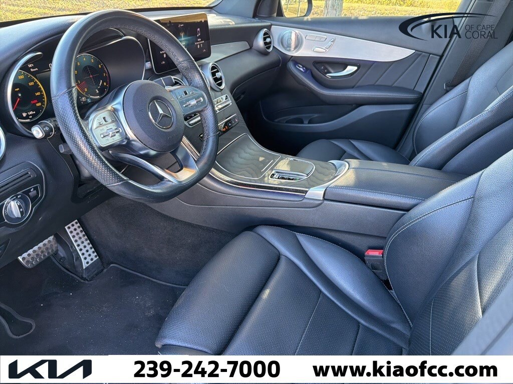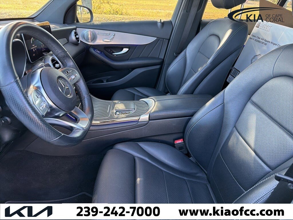 GLC 300, 4D Sport Utility, I4, 9-Speed Automatic, RWD, Black, Black Artico Leather, 64-Color Ambient Lighting, AMG® Line, AMG® Line Body Styling, AMG® Line Exterior, AMG® Line Floor Mats, Black Roof Rails, High-Gloss Black Elements, Illuminated Door Sills, Night Package, Premium Package, SiriusXM Satellite Radio, 10.25" Center Touchscreen Display, 12.3" Digital Instrument Cluster, 3.27 Axle Ratio, 4-Way Lumbar Support, 4-Wheel Disc Brakes, 6 Speakers, ABS brakes, Adaptive Highbeam Assist, Air Conditioning, Alloy wheels, AM/FM radio, Apple CarPlay®/Android Auto®, Auto tilt-away steering wheel, Auto-dimming door mirrors, Auto-dimming Rear-View mirror, Automatic temperature control, Black Fabric Headliner, Brake assist, Brushed Aluminum Door Trim, Bumpers: body-color, Burmester® Surround Sound System, Child-Seat-Sensing Airbag, Delay-off headlights, Driver door bin, Driver vanity mirror, Dual front impact airbags, Dual front side impact airbags, Electronic Stability Control, Emergency communication system: eCall Emergency System, Exterior Parking Camera Rear, Four wheel independent suspension, Front anti-roll bar, Front Bucket Seats, Front Center Armrest, Front dual zone A/C, Front reading lights, Fully automatic headlights, Garage door transmitter: HomeLink, Genuine wood dashboard insert, HANDS-FREE ACCESS, Heated door mirrors, Heated Front Bucket Seats, Heated front seats, Illuminated entry, Knee airbag, Leather steering wheel, LED Logo Projectors, Low tire pressure warning, MB-Tex Upholstery, Memory seat, Occupant sensing airbag, Outside temperature display, Overhead airbag, Overhead console, Panic alarm, Panorama Sunroof, Passenger door bin, Passenger vanity mirror, Power door mirrors, Power driver seat, Power Front Seat w/Driver Memory, Power Liftgate, Power passenger seat, Power steering, Power windows, Radio data system, Radio: MBUX Multimedia System, Rain sensing wipers, Rear anti-roll bar, Rear fog lights, Rear reading lights, Rear seat center armrest, Rear window defroster, Rear window wiper, Remote keyless entry, Roof rack: rails only, Security system, Speed control, Speed-sensing steering, Split folding rear seat, Spoiler, Steering wheel memory, Steering wheel mounted audio controls, Tachometer, Telescoping steering wheel, Tilt steering wheel, Traction control, Trip computer, Turn signal indicator mirrors, USB-C Adapter Cable (DISC), Variably intermittent wipers, Wheels: 8.5J x 20 ET 40 AMG® Multispoke w/Blk Acc, Wheels: 8J x 18 ET 38 Split 5-Spoke, GLC 300, 4D Sport Utility, I4, 9-Speed Automatic, RWD, Black, Black Artico Leather, 64-Color Ambient Lighting, AMG® Line, AMG® Line Body Styling, AMG® Line Exterior, AMG® Line Floor Mats, Black Roof Rails, High-Gloss Black Elements, Illuminated Door Sills, Night Package, Premium Package, SiriusXM Satellite Radio.