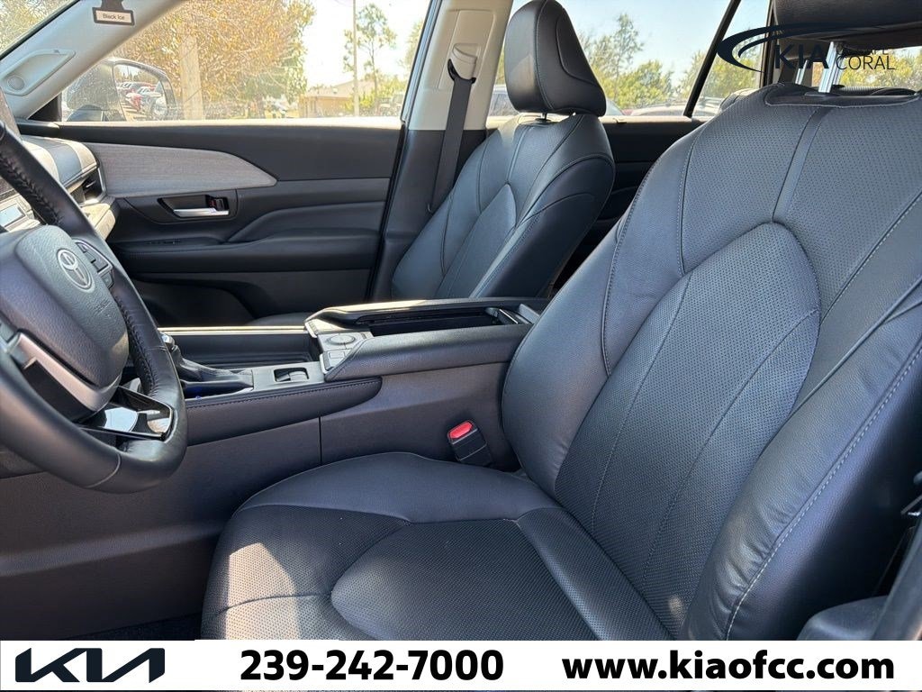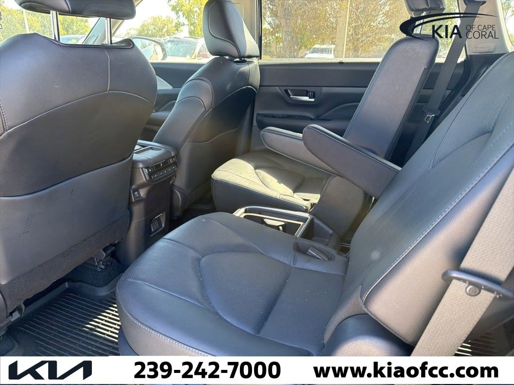 Grand Highlander Hybrid Limited, 4D Sport Utility, 2.5L 4-Cylinder 16V, CVT, AWD, Midnight Black, Black Leather, 11 Speakers, 20" Wheels, 3rd row seats: split-bench, 4-Wheel Disc Brakes, ABS brakes, Air Conditioning, All Weather Floor Liners/Cargo Tray, Alloy wheels, AM/FM radio: SiriusXM, Apple CarPlay/Android Auto, Auto High-beam Headlights, Auto-dimming Rear-View mirror, Automatic temperature control, Black Emblem Overlays, Brake assist, Bumpers: body-color, Connected Services Trial Offering: 2 Years, Delay-off headlights, Driver door bin, Driver vanity mirror, Dual front impact airbags, Dual front side impact airbags, Electronic Stability Control, Emergency communication system: Safety Connect (up to 10-year trial subscription), Exterior Parking Camera Rear, Four wheel independent suspension, Front anti-roll bar, Front Bucket Seats, Front Center Armrest, Front dual zone A/C, Front fog lights, Front reading lights, Fully automatic headlights, Garage door transmitter: HomeLink, Heated and Ventilated Front Seats, Heated door mirrors, Heated front seats, Heated rear seats, Heated steering wheel, Illuminated entry, Knee airbag, Leather Seat Trim, Leather Shift Knob, Leather steering wheel, Logo Side Puddle Lamp, Low tire pressure warning, Memory seat, Navigation system: Drive Connect Cloud Navigation (1-year trial subscription), Occupant sensing airbag, Outside temperature display, Overhead airbag, Overhead console, Panic alarm, Panoramic Roof, Panoramic View Monitor, Passenger door bin, Passenger vanity mirror, Power door mirrors, Power driver seat, Power Liftgate, Power passenger seat, Power steering, Power windows, Radio: 12.3" Toyota Audio Multimedia with JBL Premium Audio, Rain sensing wipers, Rear air conditioning, Rear anti-roll bar, Rear Hatch Cargo Lamps, Rear reading lights, Rear window defroster, Rear window wiper, Reclining 3rd row seat, Remote keyless entry, Running Board, Security system, Speed control, Speed-sensing steering, Split folding rear seat, Spoiler, Steering wheel mounted audio controls, Telescoping steering wheel, Tilt steering wheel, Traction control, Trip computer, Turn signal indicator mirrors, Variably intermittent wipers, Ventilated front seats, Wheel Locks, Wheels: 20" Black, Wheels: 20" Silver Multi-Spoke Alloy, Grand Highlander Hybrid Limited, 4D Sport Utility, 2.5L 4-Cylinder 16V, CVT, AWD, Midnight Black, Black Leather.